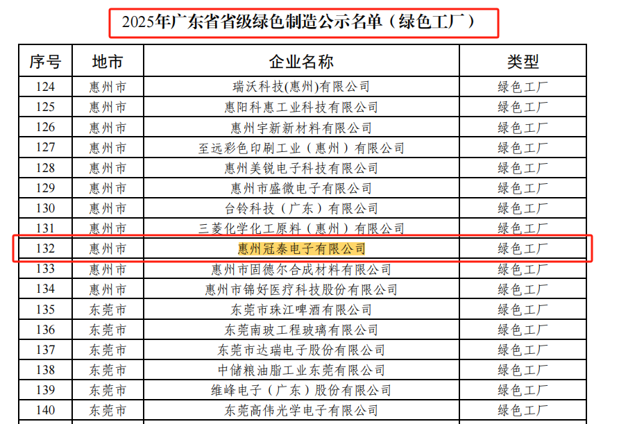 一则重磅消息!惠州冠泰电子有限公司的名字,赫然出现在广东省工信厅的“2025年省级绿色工厂”名单之上。这不仅是墙上一张耀眼的证书,更是我们通向未来的关键“通行证”。